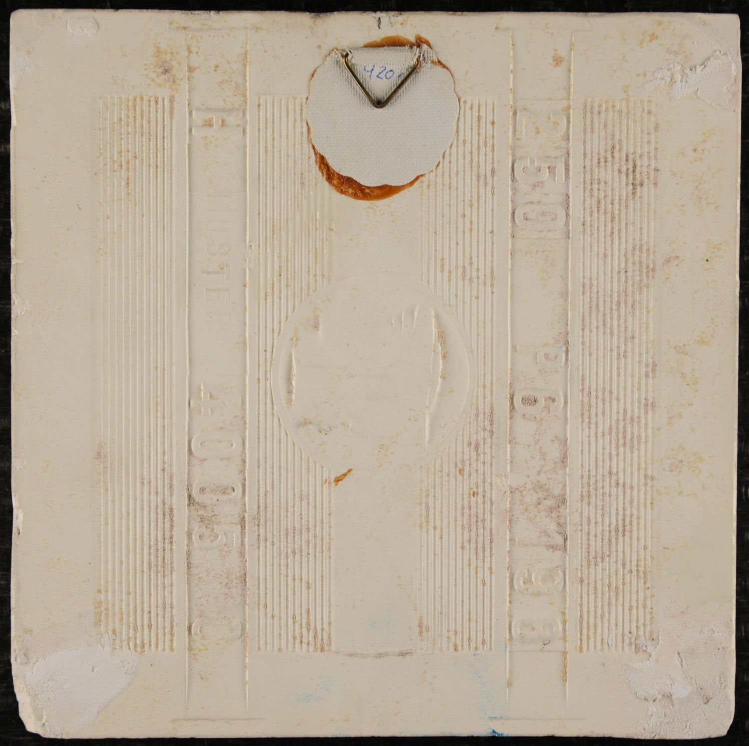 This expressive Art Nouveau tile was produced by Boizenburger Wandplattenfabrik, Boizenburg an der Elbe, a factory founded in 1903 and still active today. Its long-standing ceramic heritage is preserved in the town’s renowned tile museum. The design depicts a stylised wading bird nestled among tall reeds, rendered in soft tonal glazes of olive green, sky blue, brown, and black. The oval framing adds focus to the motif and highlights the organic curves typical of Jugendstil design. The relief is sharply defined, allowing the glossy glazes to settle beautifully into the recessed contours and enhancing the flowing shapes of the composition. The surface shows visible craquelure, consistent with age, and the tile presents damage to the lower corners, though the central image remains unaffected and visually strong.