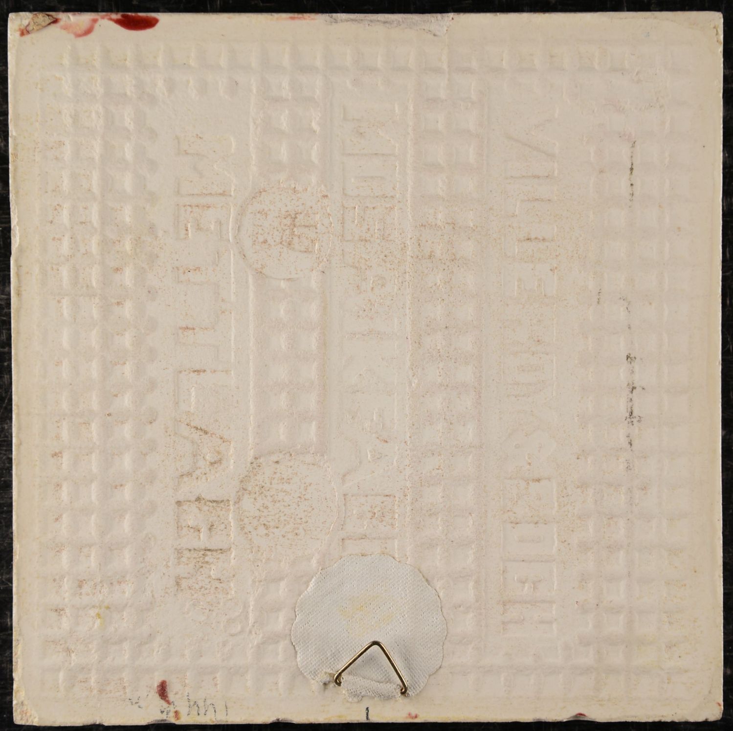 This exceptional Villeroy & Boch Mettlach tile, with a design attributed to Henry van de Velde. Produced using the dust-pressed technique, the tile features a sculpted relief that brings its dynamic, flowing forms into striking visual focus. Rendered in a rich, glossy oxblood red glaze, the surface enhances the depth of the relief and adds a luxurious, almost sculptural presence. Good condition tile, but with some glaze damage to bottom left corner.