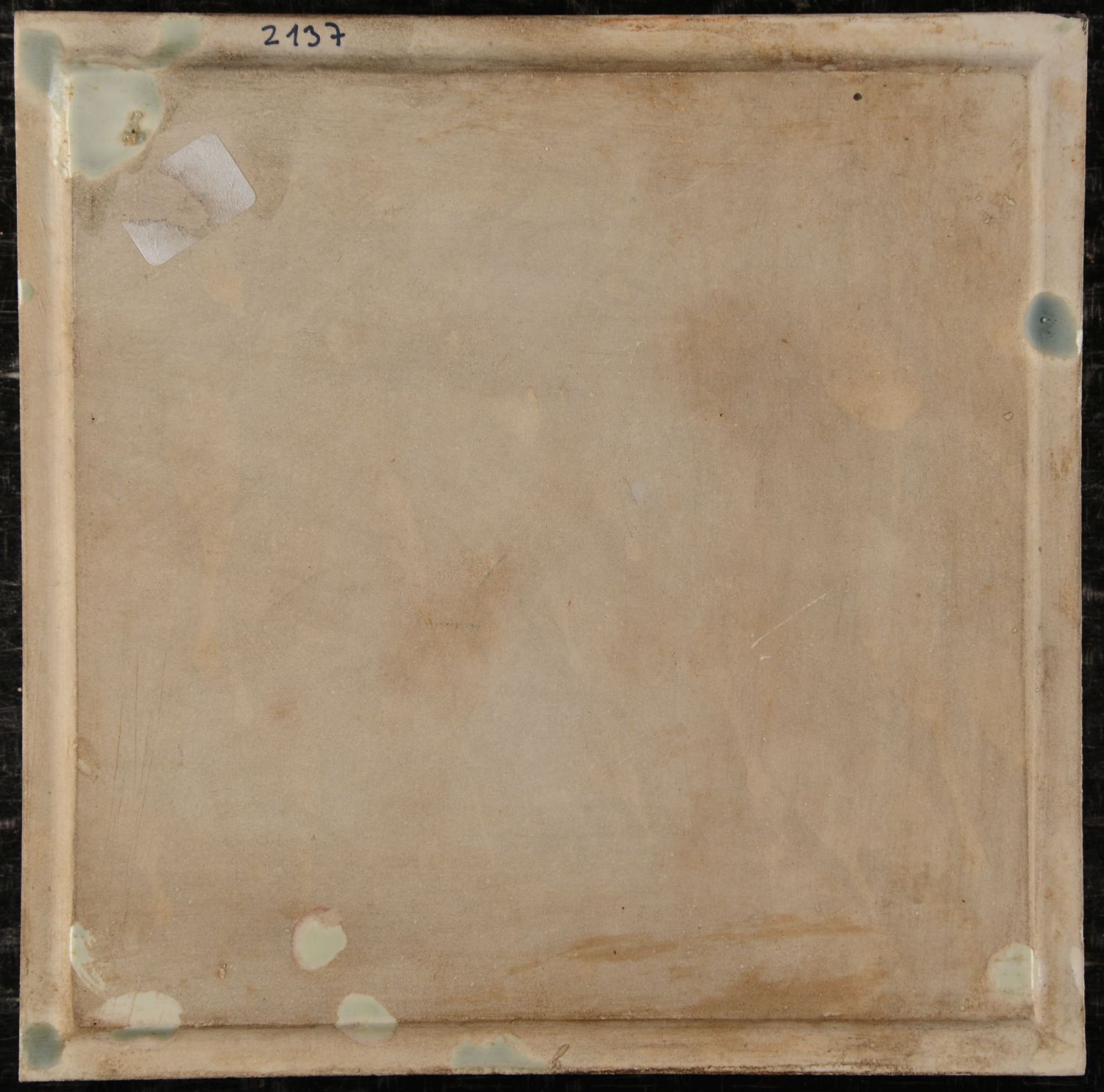 NSTG (Norddeutsche Steingutfabrik Grohn) Art Nouveau Tile, c.1900 A refined Art Nouveau tile made around 1900 by NSTG (Norddeutsche Steingutfabrik Grohn), Germany. The design features a striking stylized red flower with cream petals and geometric detailing set against a soft grey-blue background — a perfect balance between floral elegance and modernist symmetry. Produced in relief using the traditional dust-press technique, the tile shows the exceptional quality typical of NSTG’s early 20th-century craftsmanship. In excellent condition.