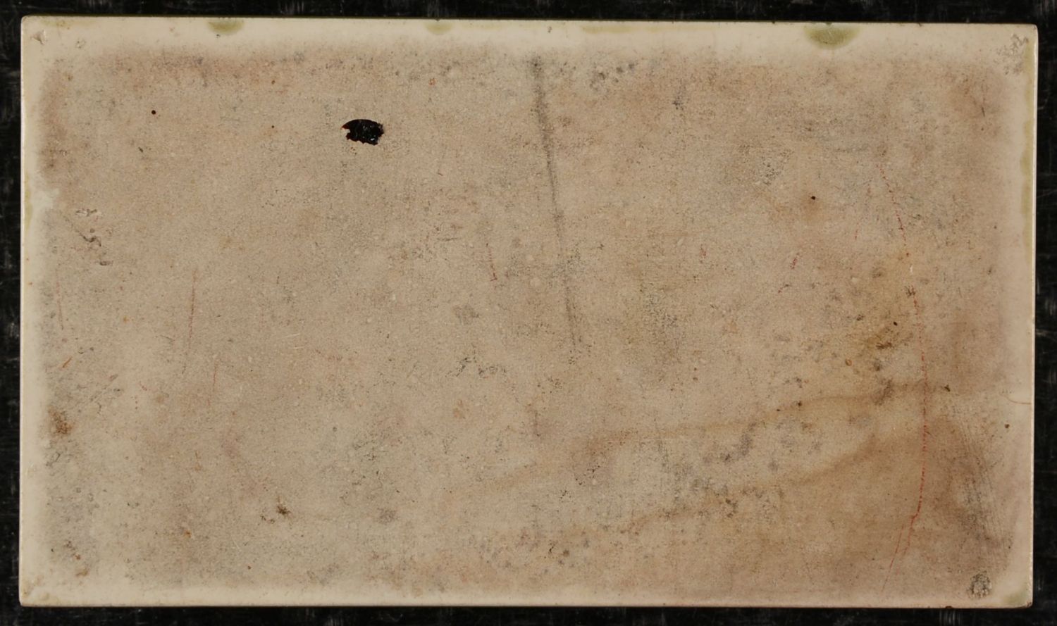 This rare advertising presse-papier from Boizenburg Wandplatten is a finely modelled example of early 20th-century ceramic promotional art. Executed in dust-pressed relief, the piece displays crisp detailing and a soft, translucent glaze that enhances its sculptural presence. At the centre appears a classical profile of a woman, her stylised features rendered with elegant restraint. She is framed by two geometric panel motifs, each composed of interlocking circles and latticework that echo the decorative vocabulary of the period. Surrounding these elements, the raised inscriptions “BOIZENBURGER WANDPLATTEN” above and “BOIZENBURG” below underscore the object’s function as an advertisement as well as a decorative display piece.