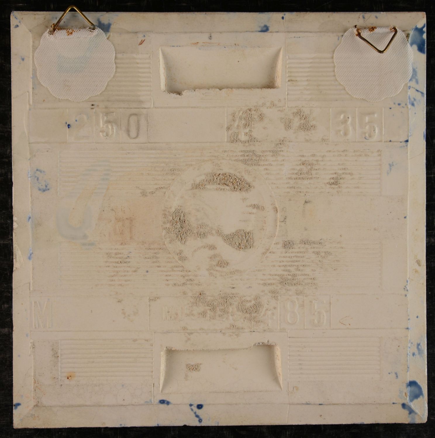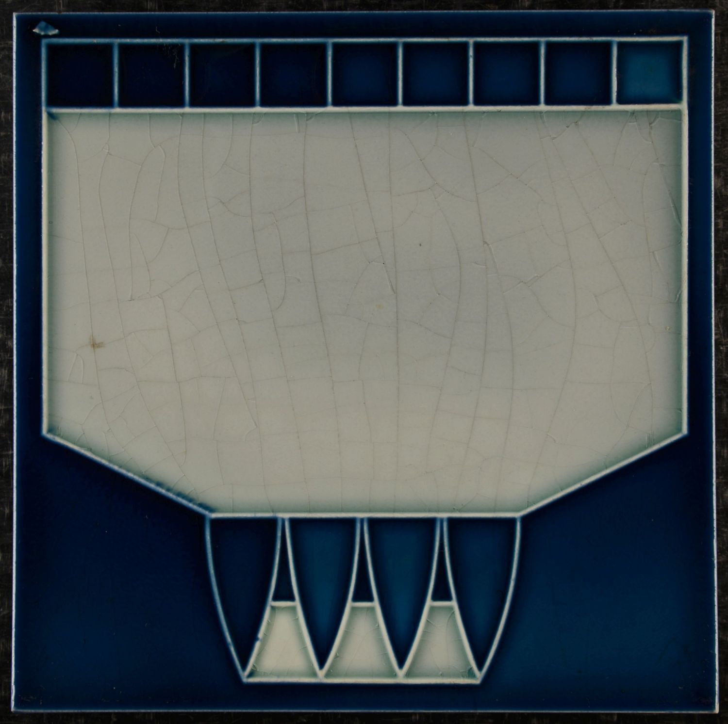 An elegant Art Nouveau wall tile produced by Boizenburg Wandplattenfabrik, located in Boizenburg an der Elbe. The design features a striking geometric composition. The tile is executed in a refined palette of deep cobalt blue and soft grey. The glossy glaze and crisp relief lines give the tile a strong architectural presence. Very good overall condition. Light age-related wear.