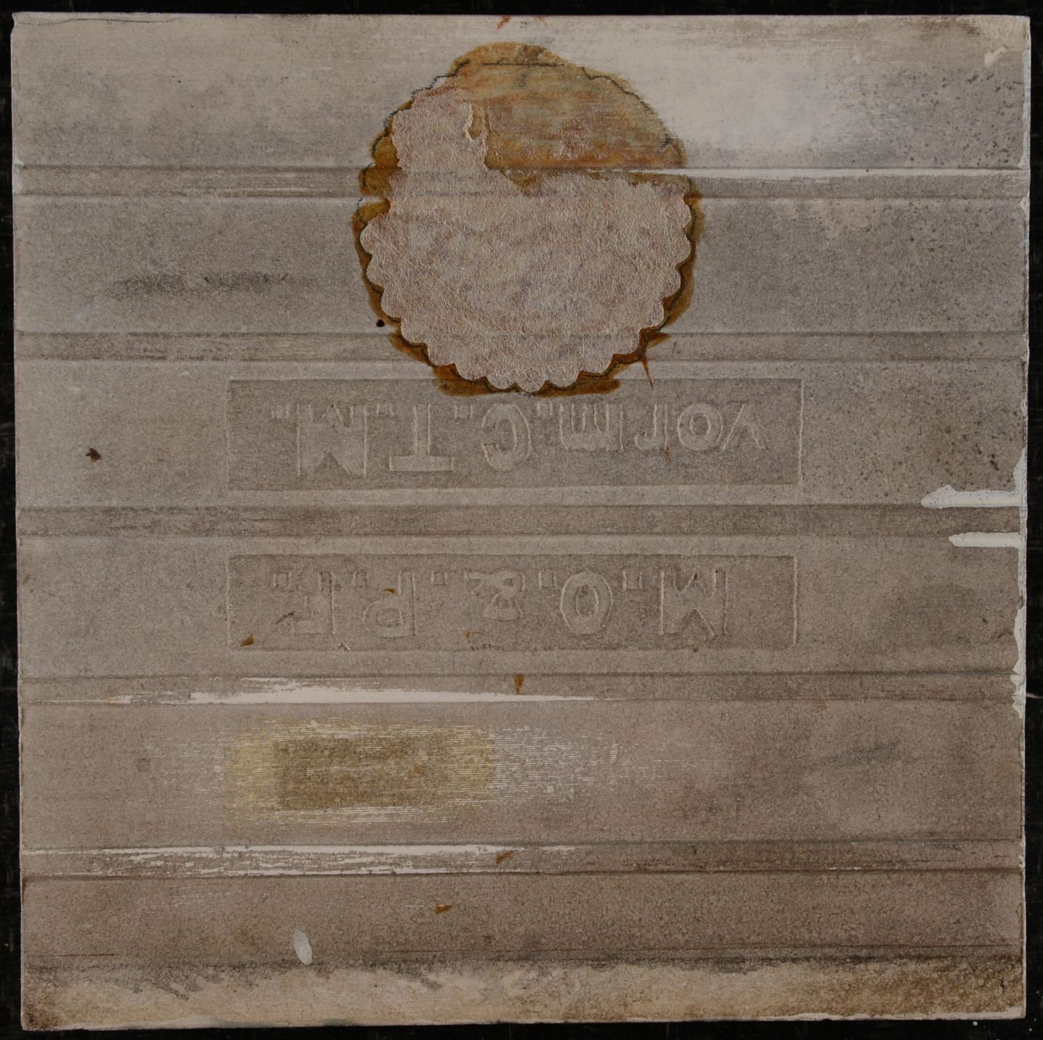 This tile by M.O.P.F., Meissner Ofen- und Porzellanfabrik, formerly Ernst Teichert, is a fine example of Art Nouveau design dating from around 1900. The composition is symmetrical and centered on a stylized floral motif with flowing, organic lines. A softly modeled pink blossom crowns the design, providing a delicate focal point.Curving stems and leaves unfold downward in an elegant, rhythmic movement. The relief is finely dust-pressed, giving the surface a gentle sculptural depth. Rare colour combination for this design! Tile is in good condition, with only a few tiny glaze chips to sides.