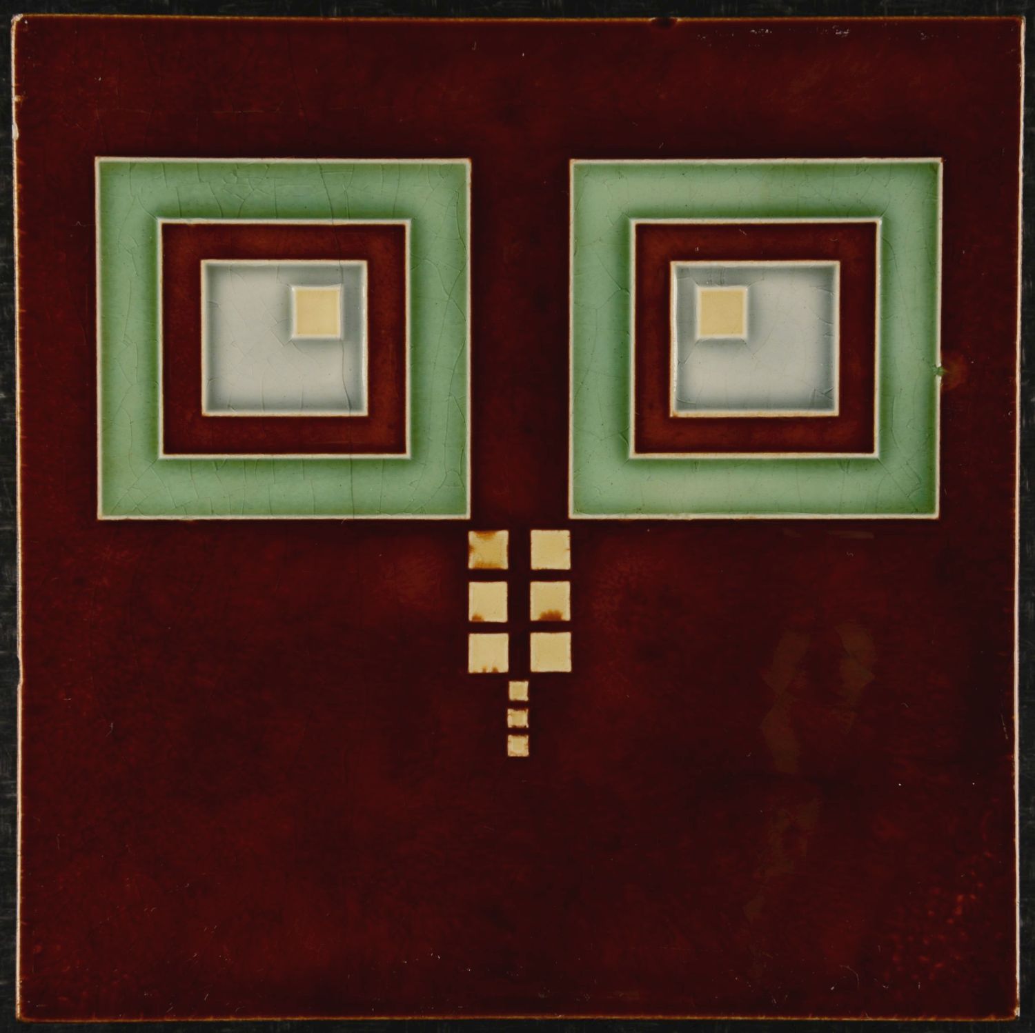 This is a striking ceramic tile manufactured by the Norddeutsche Steingutfabrik Grohn (NstG) in Germany. Its design is a characteristic of Germany Art Nouveau design. Excellent condition tile.