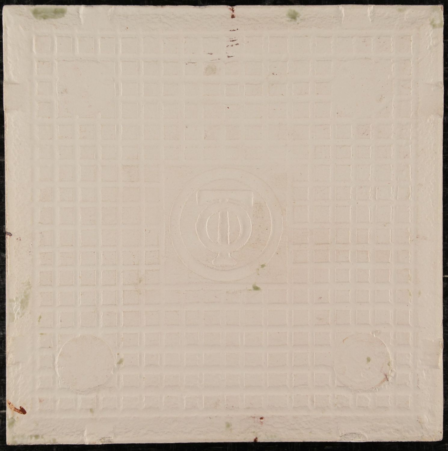 This refined geometric Art Nouveau tile was produced by Tonindustrie Offstein Albertwerke GmbH, Offstein and Worms, a manufacturer celebrated for its high-quality dust-pressed ceramics of the early 20th century. The tile presents a minimalist yet striking Jugendstil design composed of repeated U-shaped relief elements arranged rhythmically along the upper edge. Four small square accents beneath them reinforce the balanced, architectural quality of the composition.The relief is crisp and beautifully executed, rising cleanly from the surface and creating subtle interplay between light and shadow. A softly graduated glaze shifts from pale grey to deeper greenish tones, enhancing the tile’s sense of depth while maintaining a calm, elegant presence. The tile is in very fine condition, with bright, clean glazing.